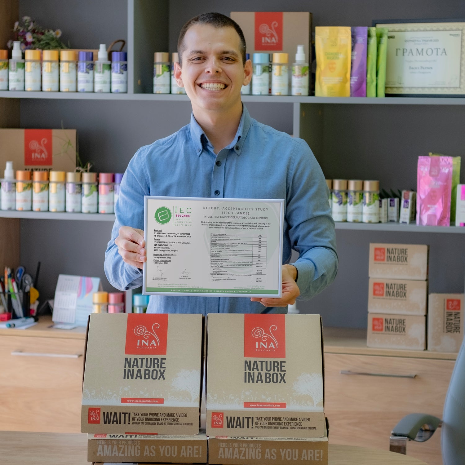 Nyd en komplet oplevelse med InaEssentials produkter. Vores InaEssentials naturlige produkter kommer i en Nature INA Box - en skræddersyet designer genanvendt papkasse, der formidler vores families historie og værdier - omsorg for naturen og omsorg for dig, vores kunder.