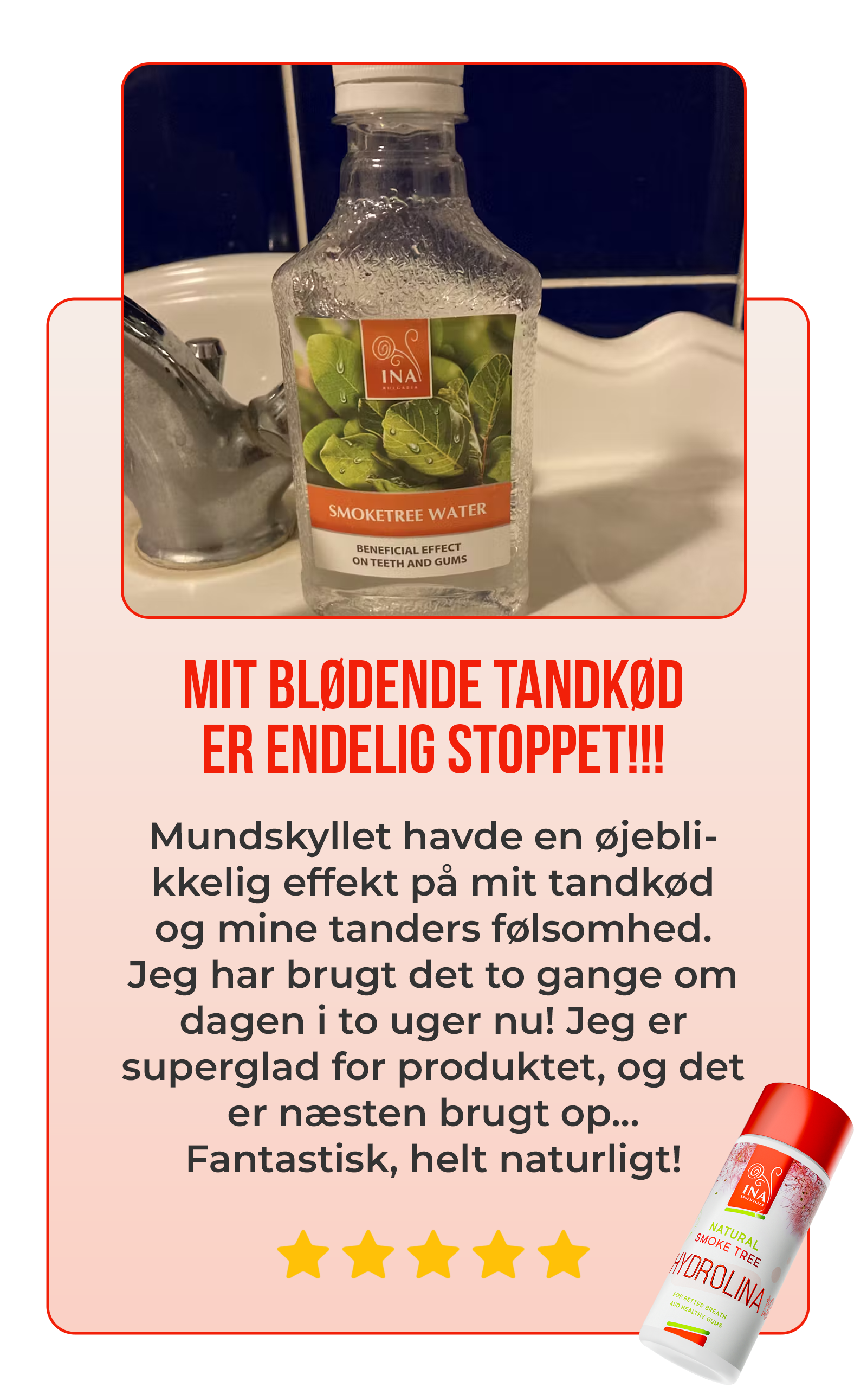 Jeg har nu brugt Røgtrævand - Hydrolina i et par måneder, og jeg har helt sikkert bemærket en forskel i sundheden af mine tandkød. Jeg kan varmt anbefale den!