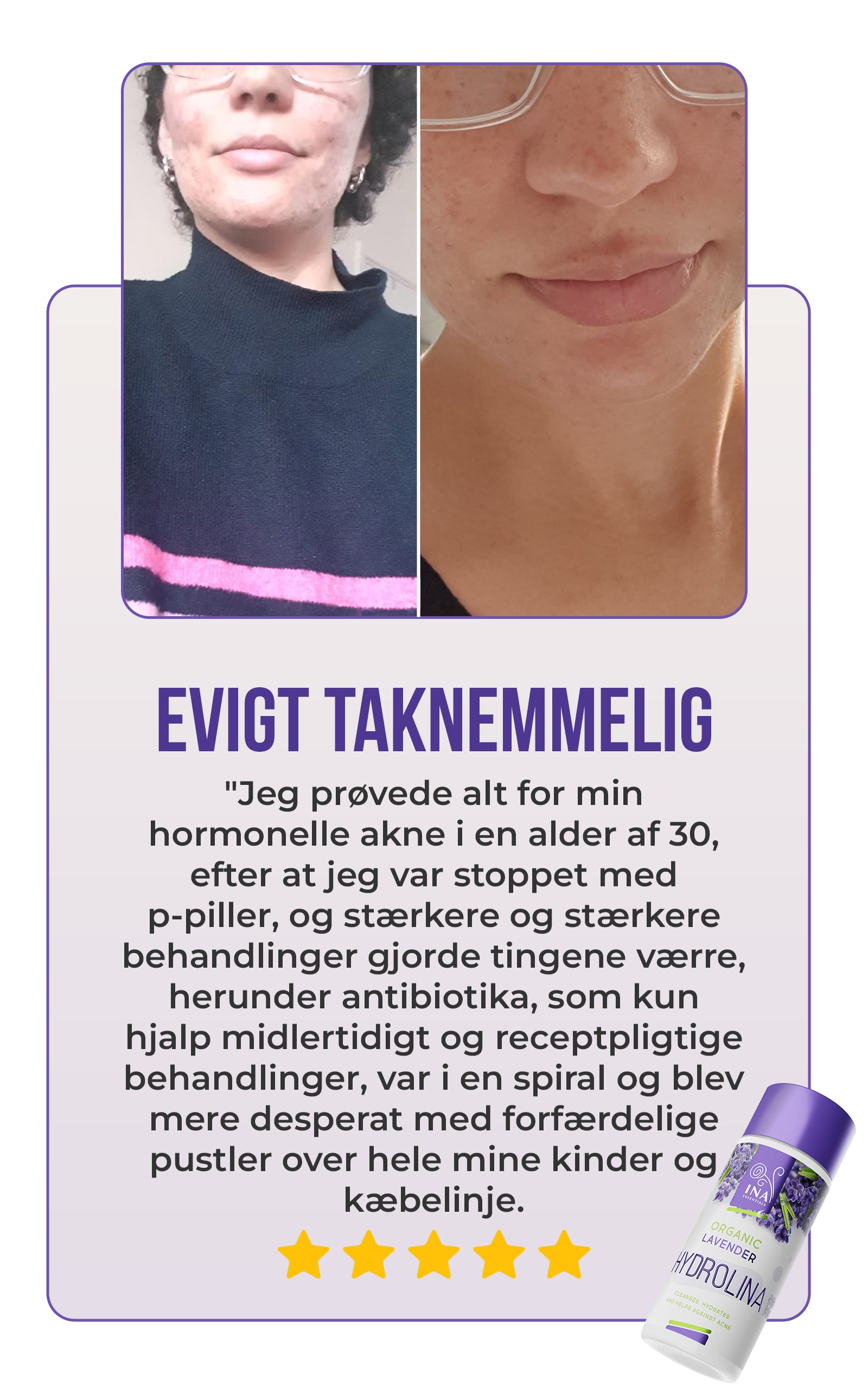 Jeg er helt vild med Lavendelvand - HYDROLINA! Det har en så beroligende og lindrende effekt på min hud. Jeg bruger det som en toner hver dag, og det har virkelig hjulpet med at reducere rødme og inflammation.