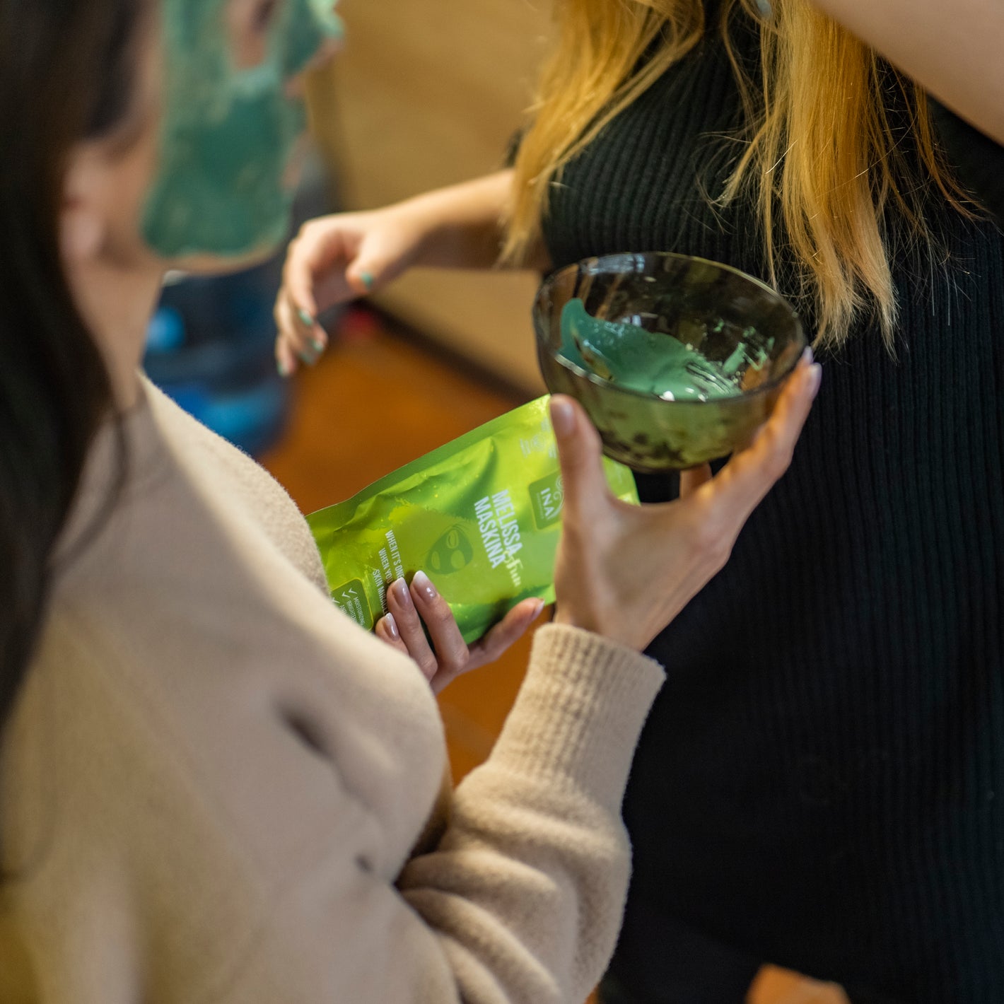 Bland 1 spsk af pulveret med en kontrolleret mængde InaEssentials melissavand hydrolina, indtil der opnås en tynd pasta