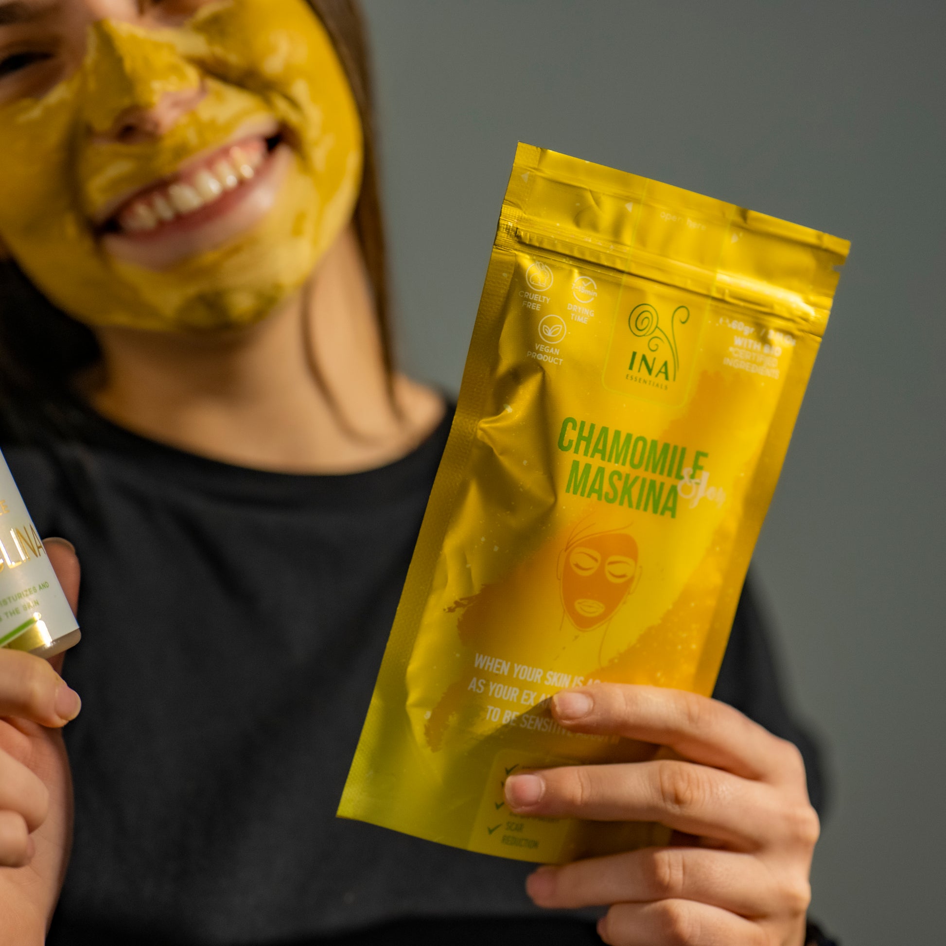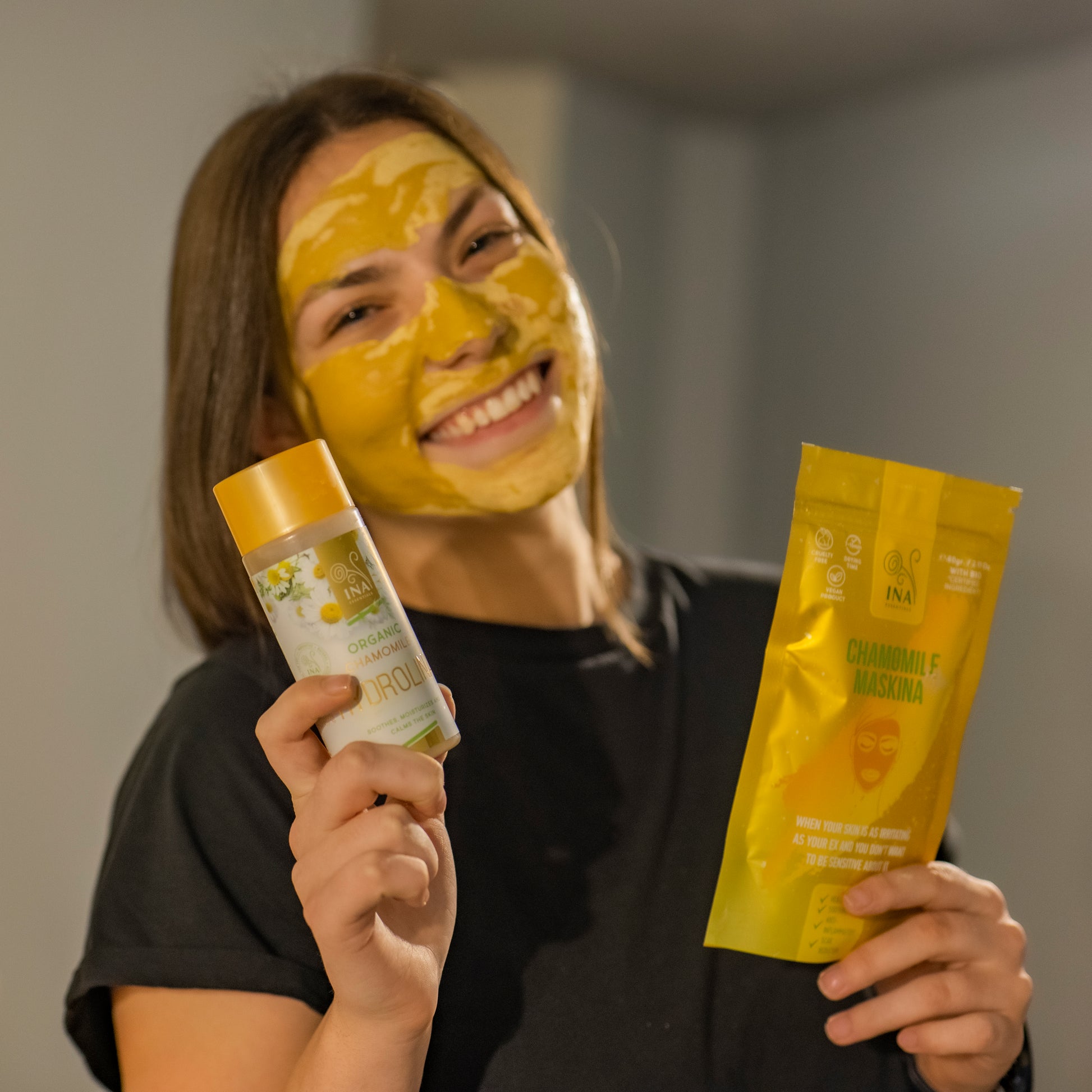 Mød dit nye yndlingsprodukt til følsom og irriteret hud -Kamille Maskina fra InaEssentials!