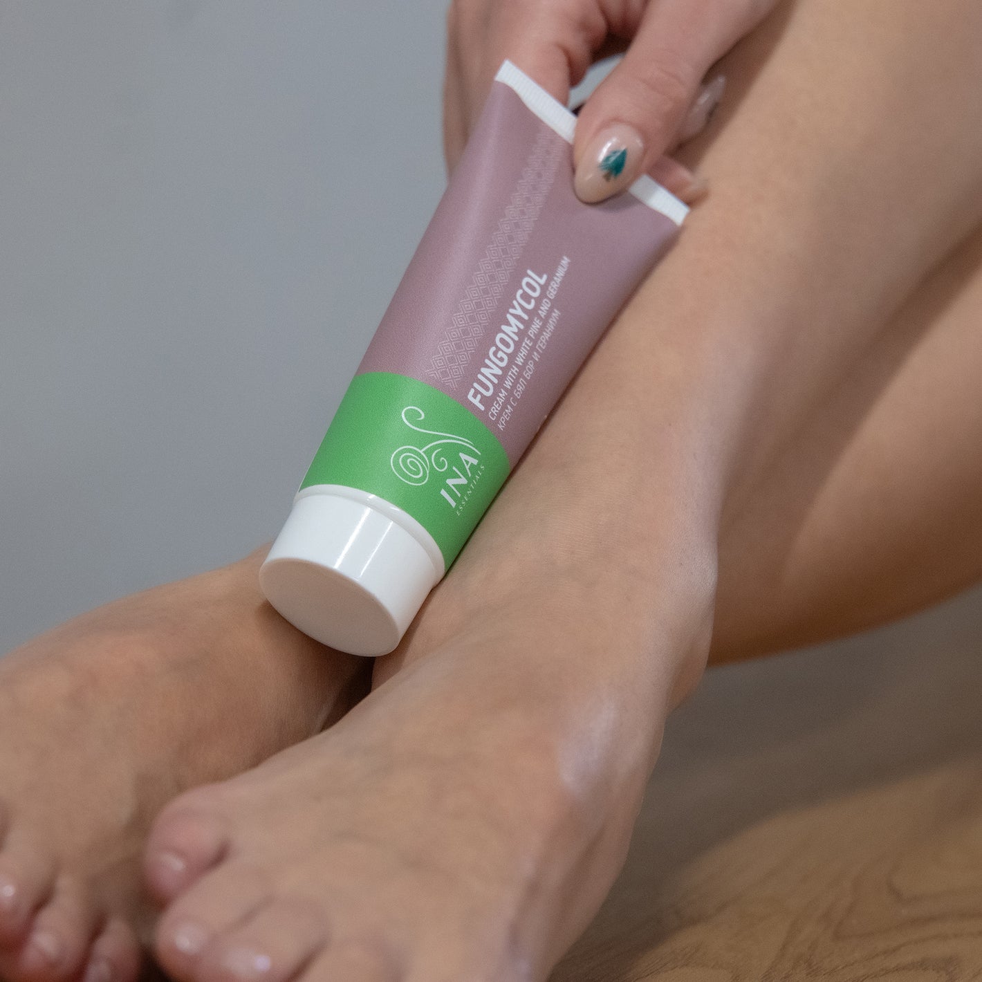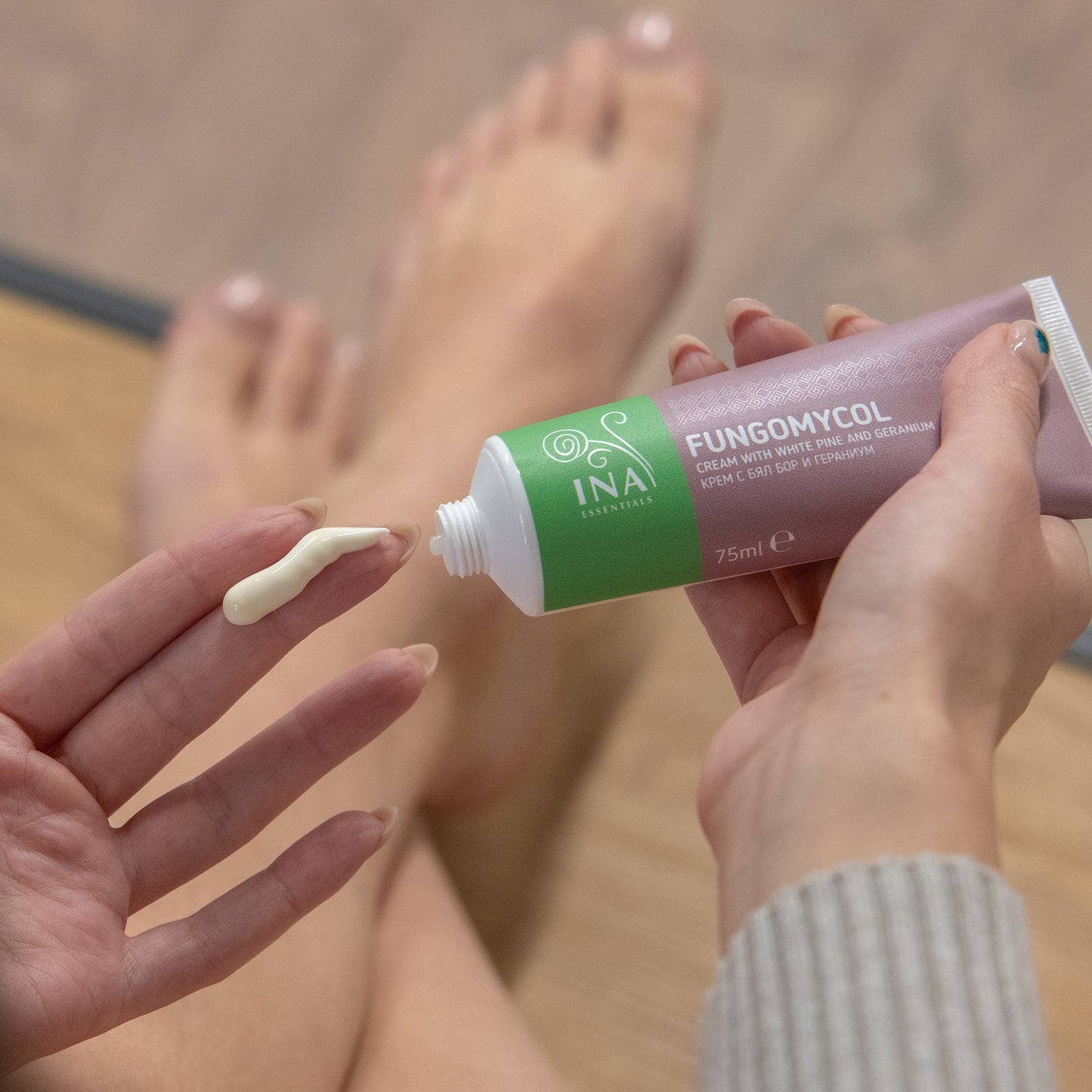 Fungomycol fra InaEssentials er en skånsom creme af høj kvalitet med naturlige aktive ingredienser og dobbeltvirkning. Den er specielt udviklet til at bekæmpe fod- og neglesvamp samt ru og revnet hud på albuer og hæle.