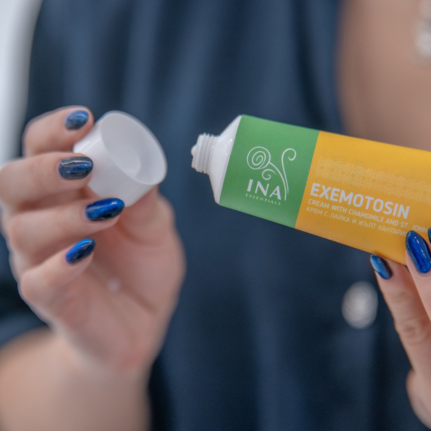 Exemotosin fra InaEssentials er en mild, nærende creme af høj kvalitet uden parfume med naturlige aktive ingredienser. Den er specielt formuleret til at opfylde behovene hos tør, skællende, kløende og rød hud, herunder hudlidelser som psoriasis og eksem.