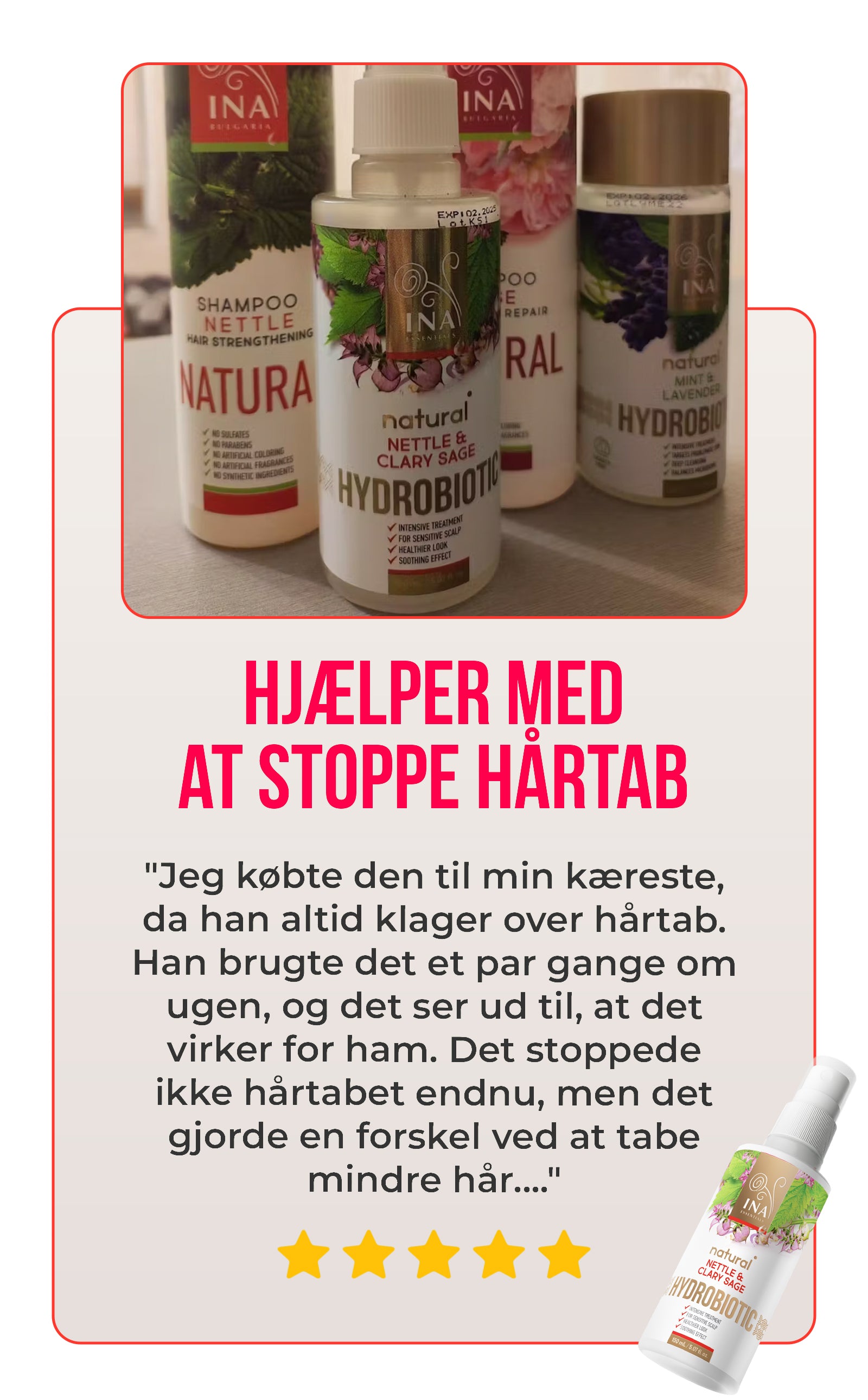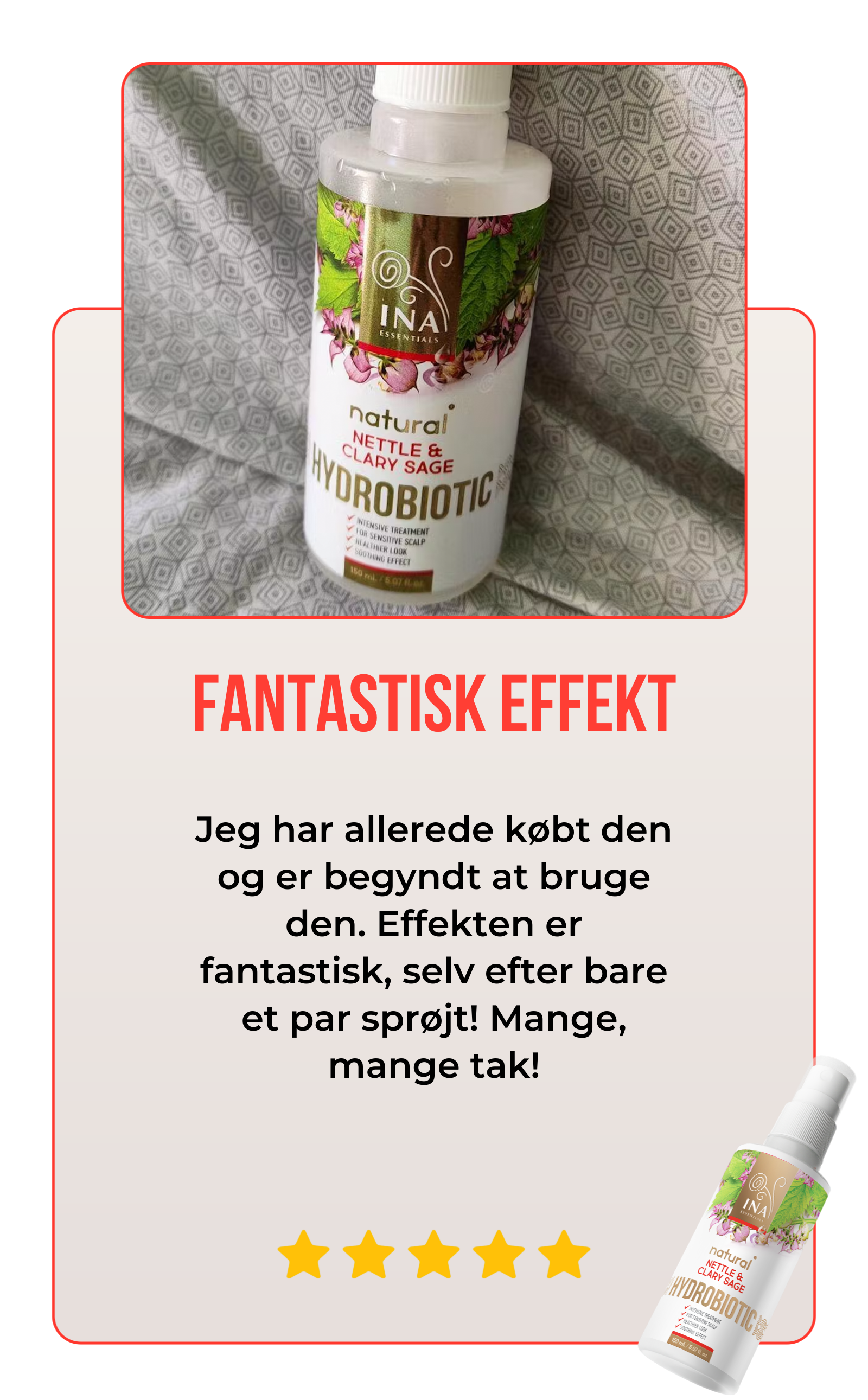 Hydrobiotic - Nælde & Salvie er blevet en favorit blandt naturlige løsninger til hår og hovedbund på bare et år med over 100.000 flasker leveret over hele verden. Vi er glade for vores lave returrate (under 1%). Det bekræfter kun vores dedikation til kvalitet og kundetilfredshed.