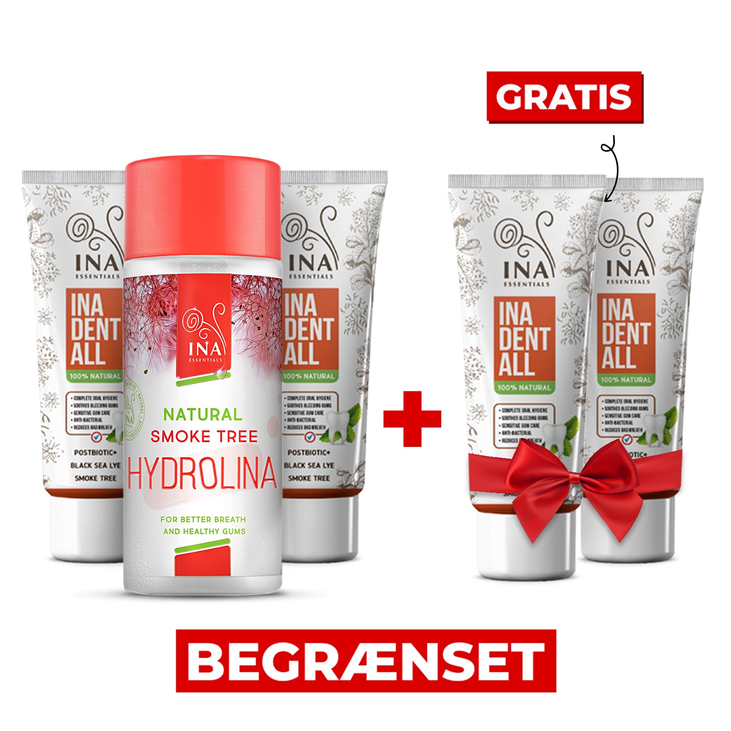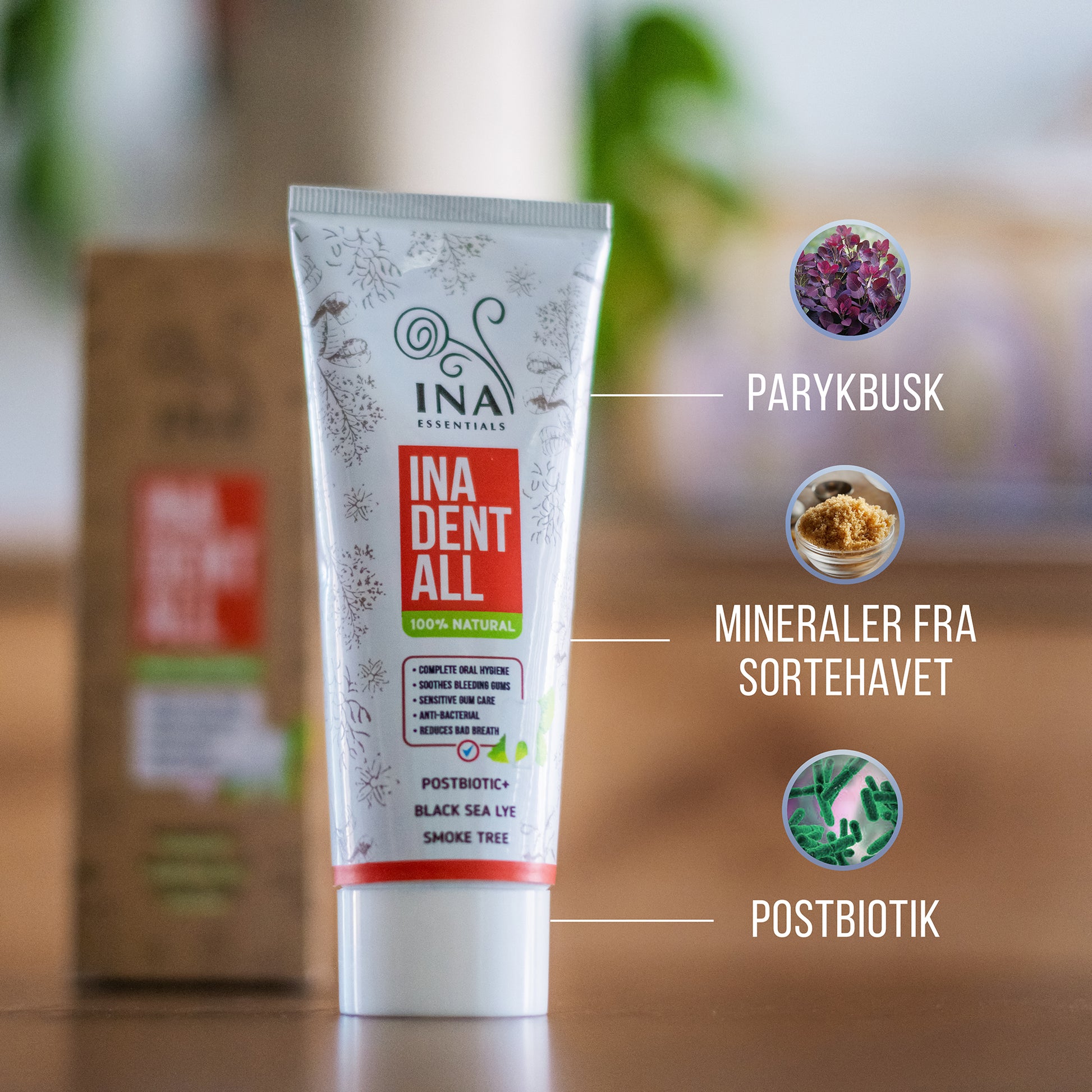 For at opnå optimale resultater og fremragende mundhygiejne skal du bruge Ina Dent-All Naturlig tandpasta uden fluor i kombination med vores Naturlige Parykbuskvand - Hydrolina til blødende tandkød og dårlig ånde.