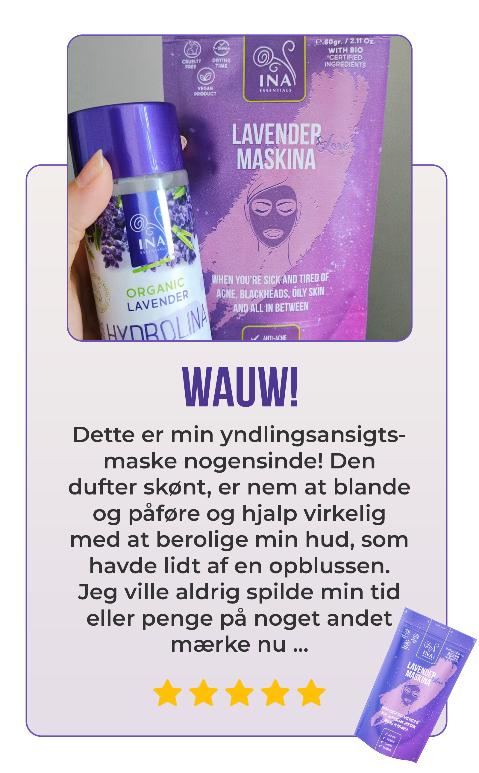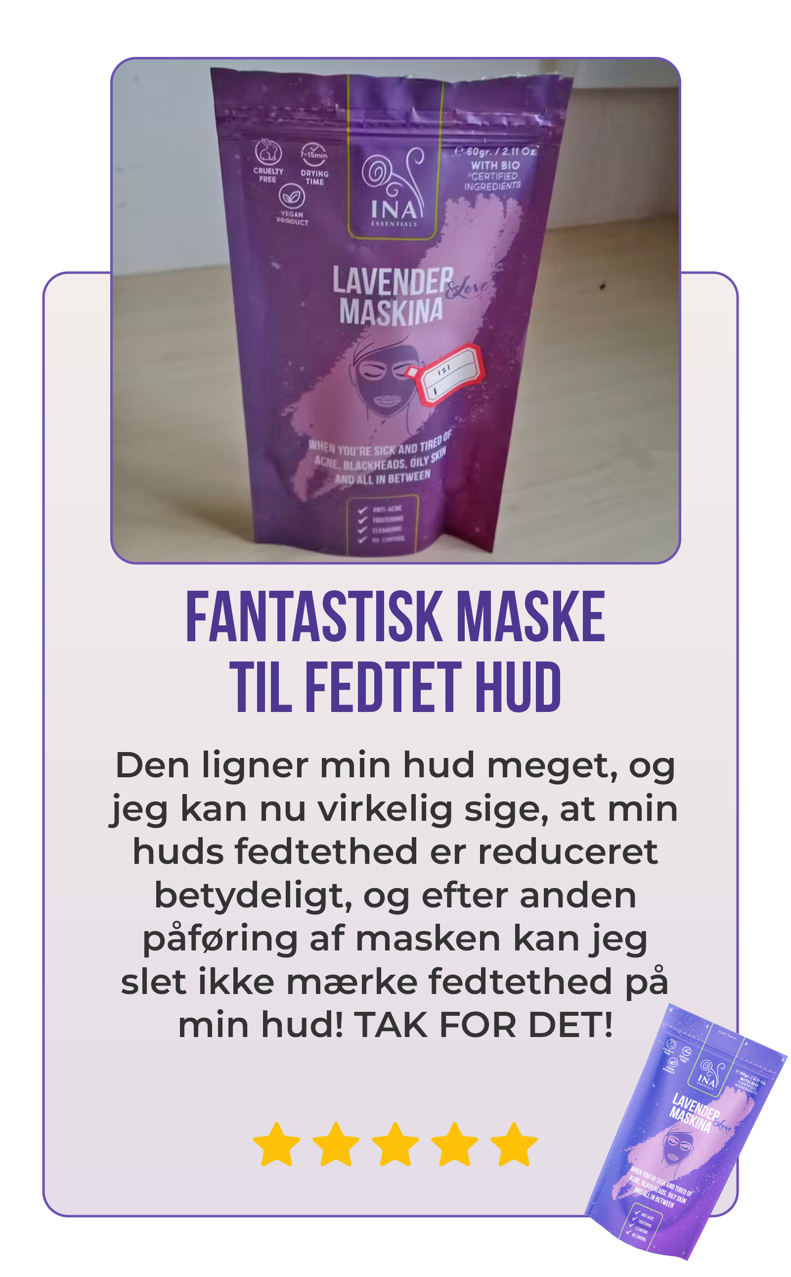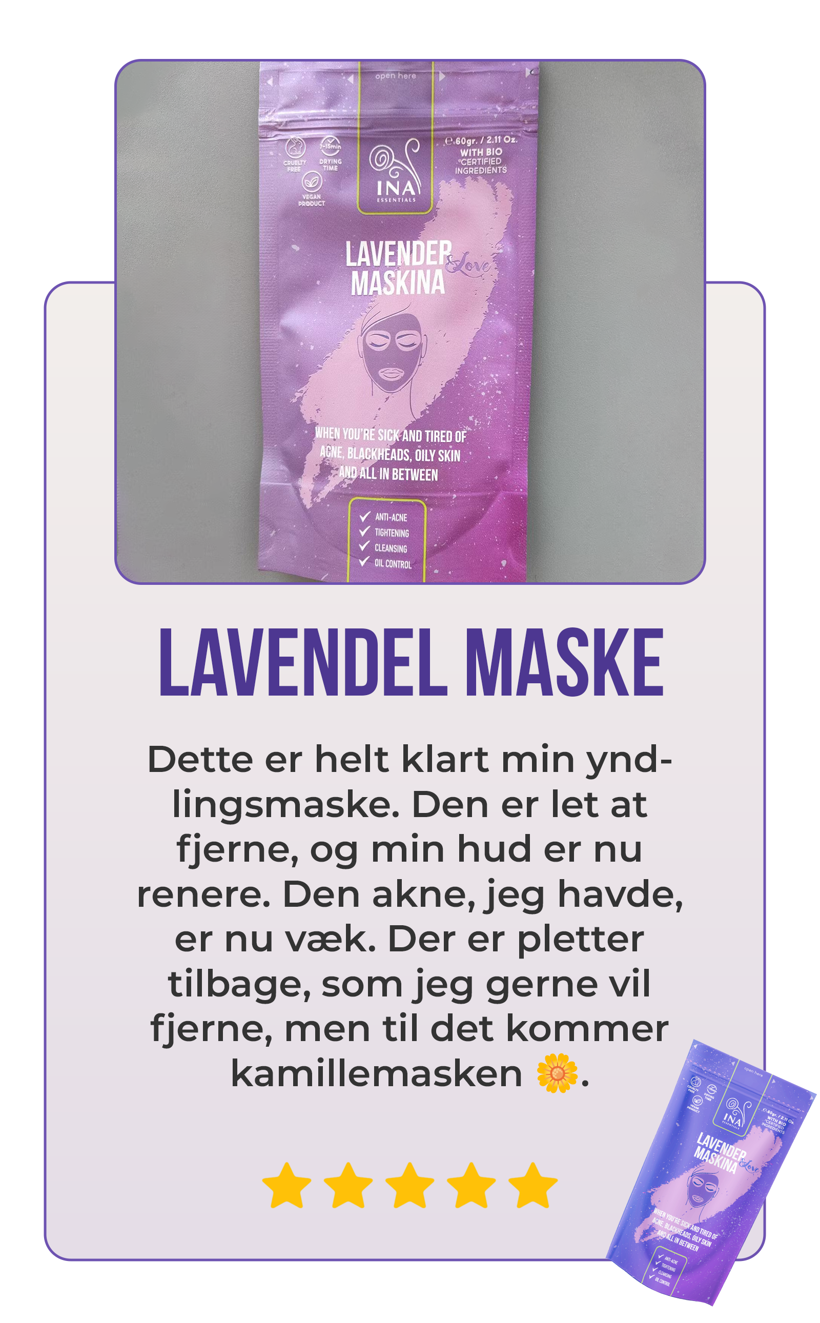 Mød dit nye yndlingsprodukt til fedtet og akneudsat hud - Lavendel Maskina fra InaEssentials!