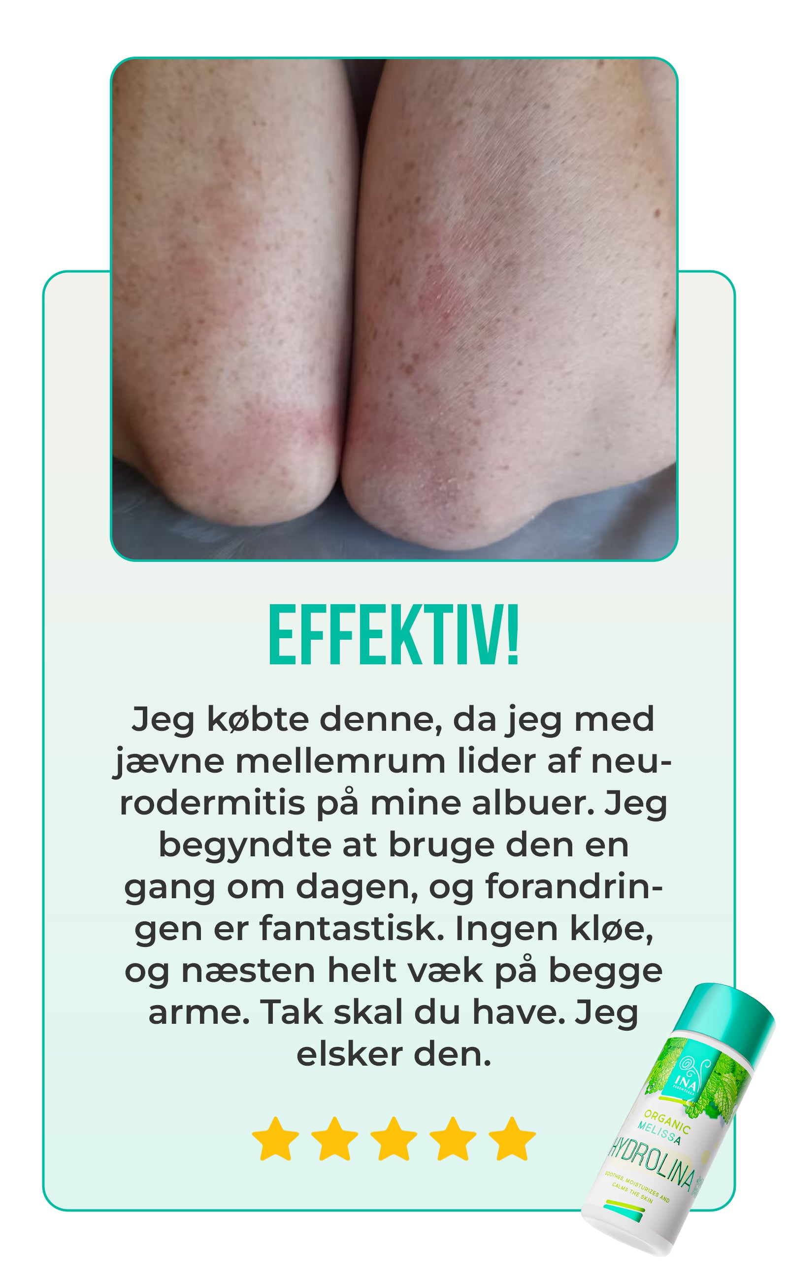 På kun fire år er Citronmelisse Hydrolina blevet en yndet naturlig dermatitisløsning, med over 100.000 flasker leveret til hele verden. Den stolthed, vi føler over vores lave returprocent (under 1%), bekræfter vores engagement i kvalitet og kundetilfredshed