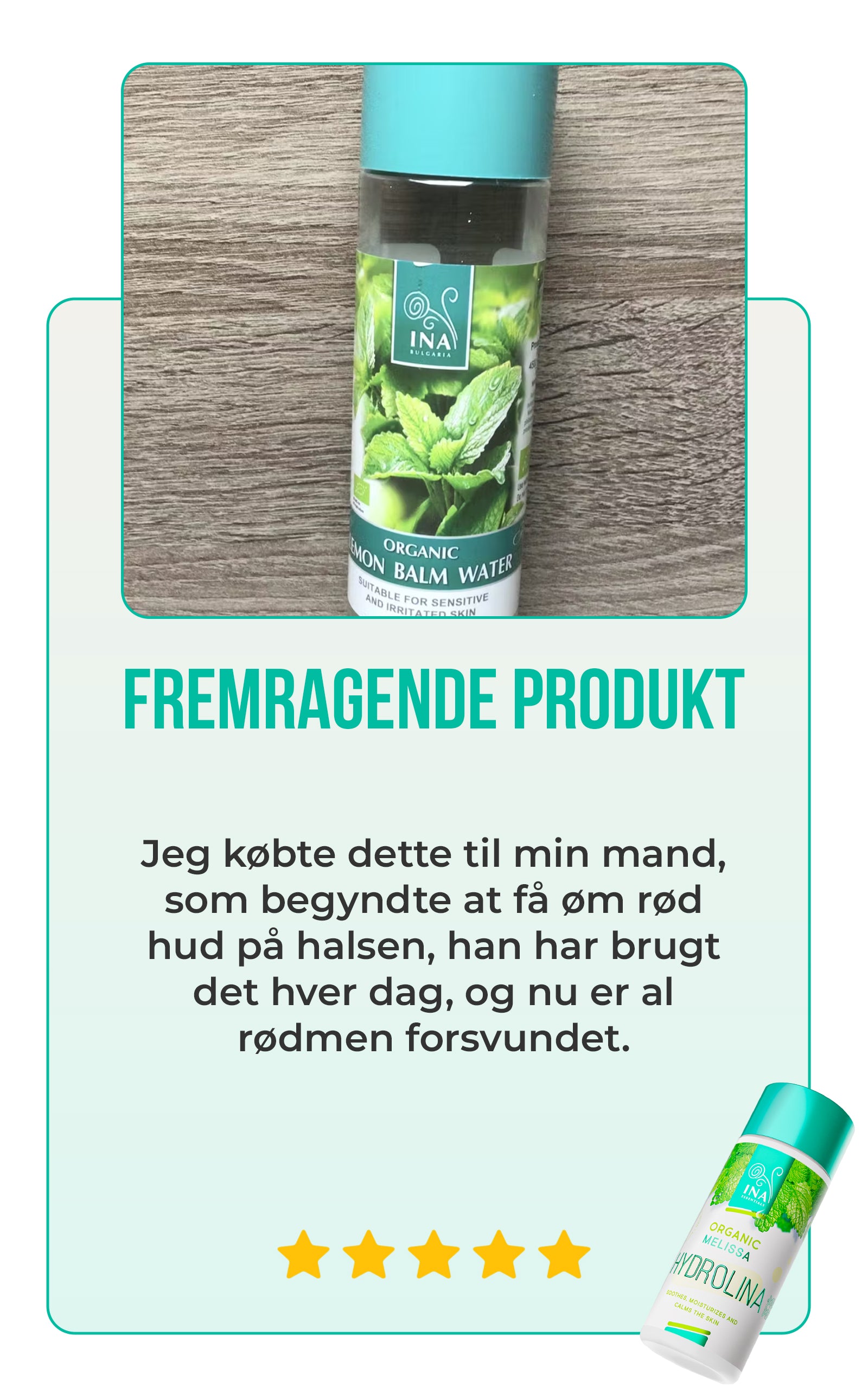 Økologisk Citronmelisse Hydrolina er ikke kun en smuk flaske, den er også bekræftet af vores kunders ægte udtalelser. Med en imponerende kundetilfredshedsscore på over 90% demonstrerer vores produkt sin evne til at bekæmpe hudbetændelse og dermatitis, samtidig med at det forbedrer den overordnede hudtilstand. Du behøver ikke bare at stole på vores ord, læs vores kunders historier og oplev det selv.