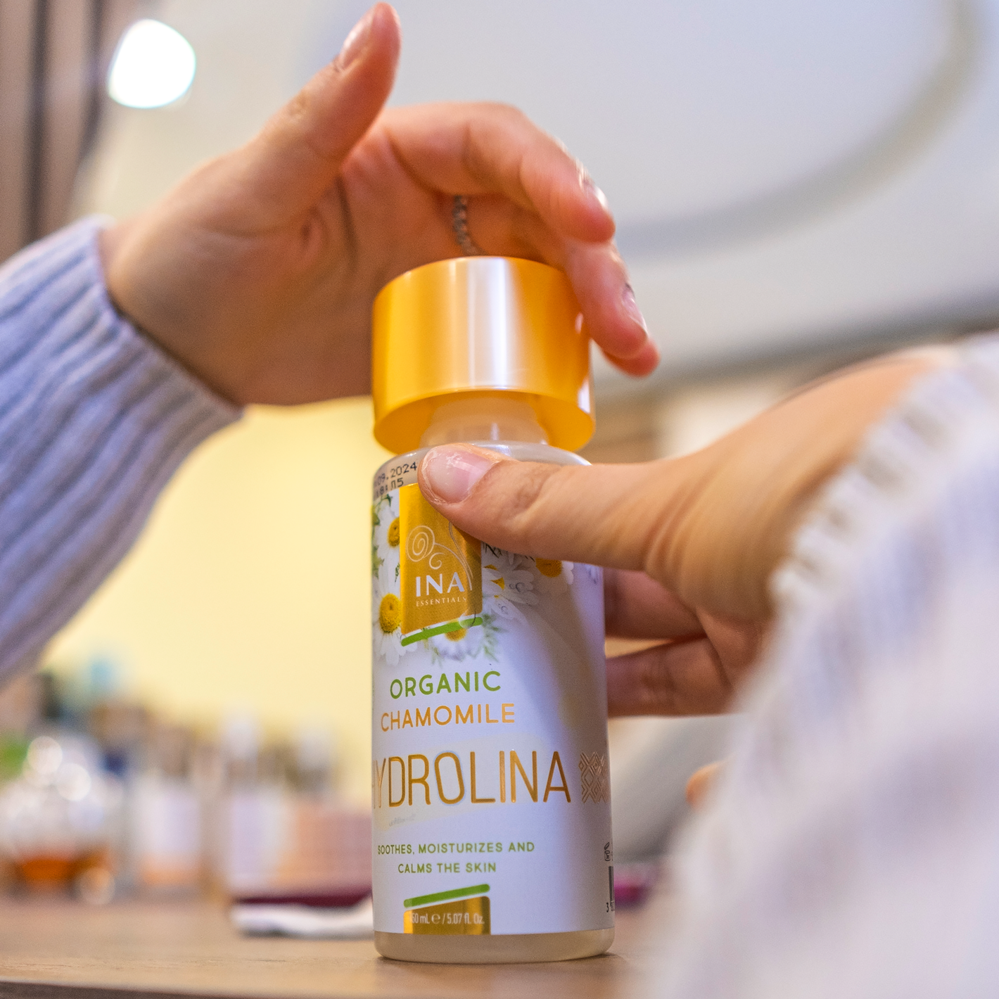 Økologisk Kamille Hydrolina er virkelig fantastisk for din hud med dens kraftfulde antiinflammatoriske og dybt fugtgivende egenskaber. De bioaktive antioxidanter og antiinflammatoriske komponenter, såsom terpenoider og flavonoider, der findes i kamillehydrolatet, hjælper med at fremme cellefornyelse og bekæmpe oxidativ skade. Det er en ægte hjælp mod udslæt, sår, eksem og andre dermatitistilstande. Disse elementer holder din hud i balance og får den til at stråle af skønhed. Økologisk Kamille Hydrolina tilfører rigelig fugt til din hud, forhindrer tørhed og efterlader dig med en glødende og ungdommelig teint.