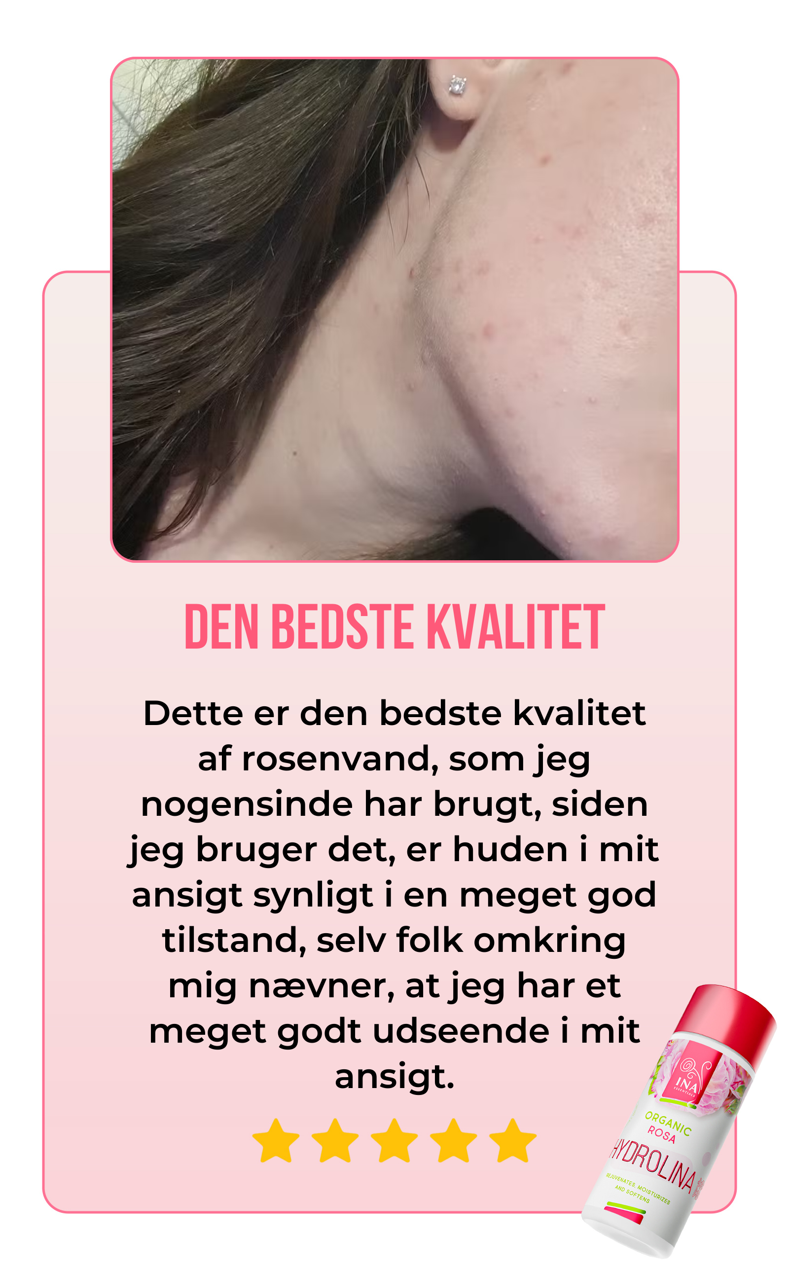 Rose Hydrolina er ikke kun en smuk flaske, den er også bakket op af ægte kundeudtalelser. Med en imponerende kundetilfredshedsscore på over 90% demonstrerer vores produkt sin evne til at håndtere tør hud fine linjer, samtidig med at det forbedrer din huds sundhed. Tag ikke blot vores ord for det, læs vores kunders historier.