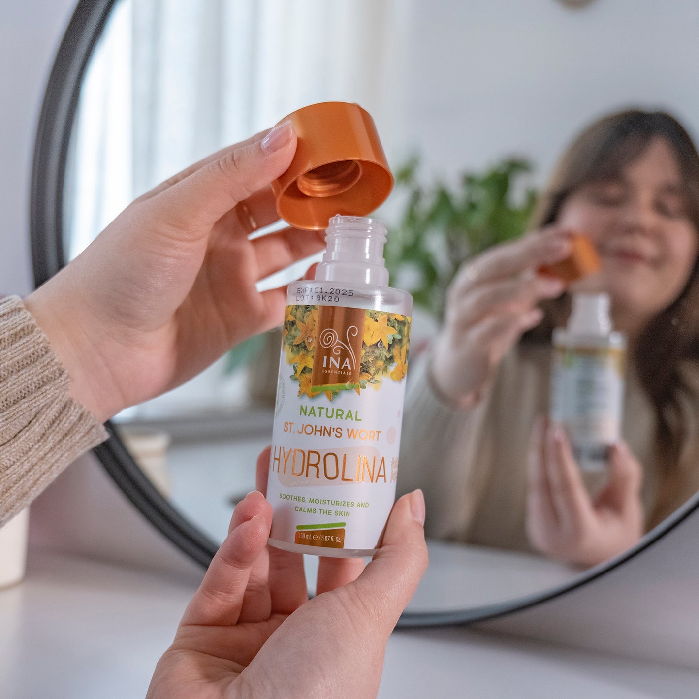 Lindr din hud med Vild Perikumvand Hydrolina (Johannesurt), vores familiefremstillede løsning mod psoriasis og følsom hud. Det perfekte match til alle hudtyper.