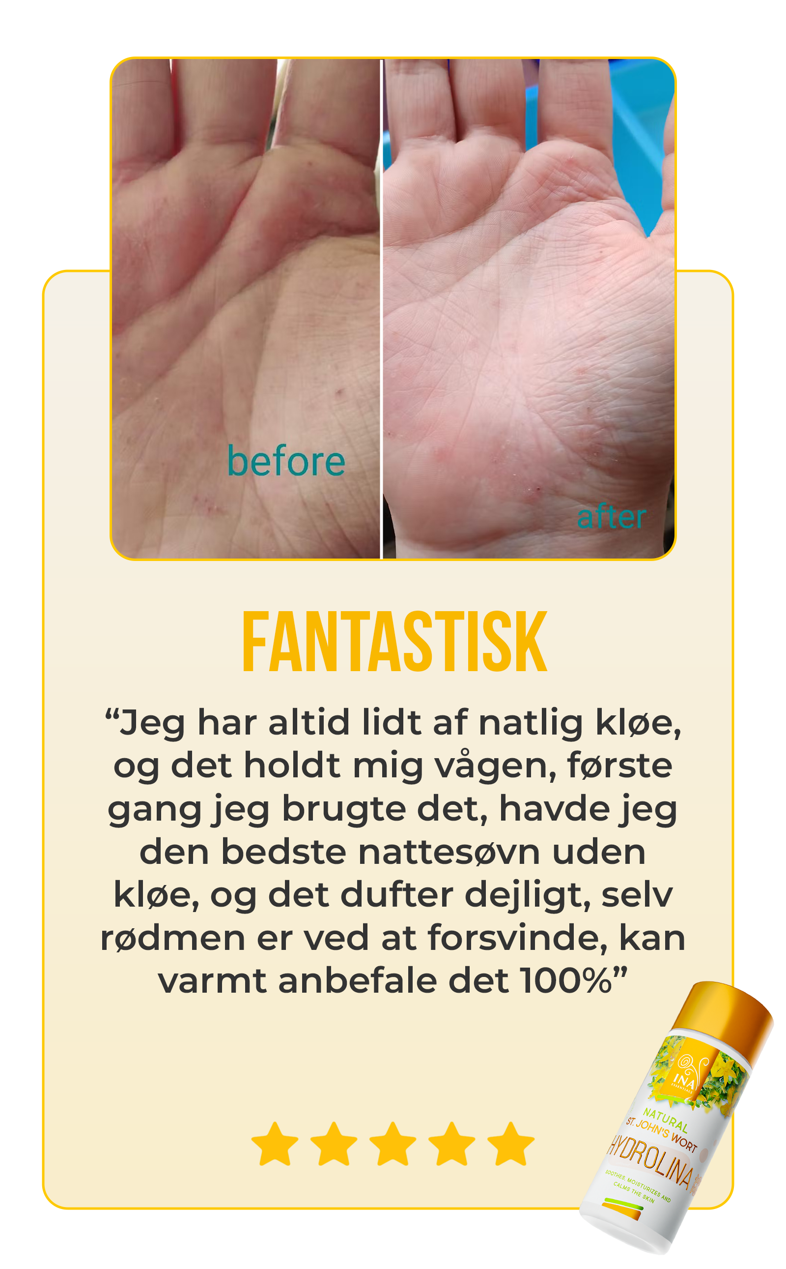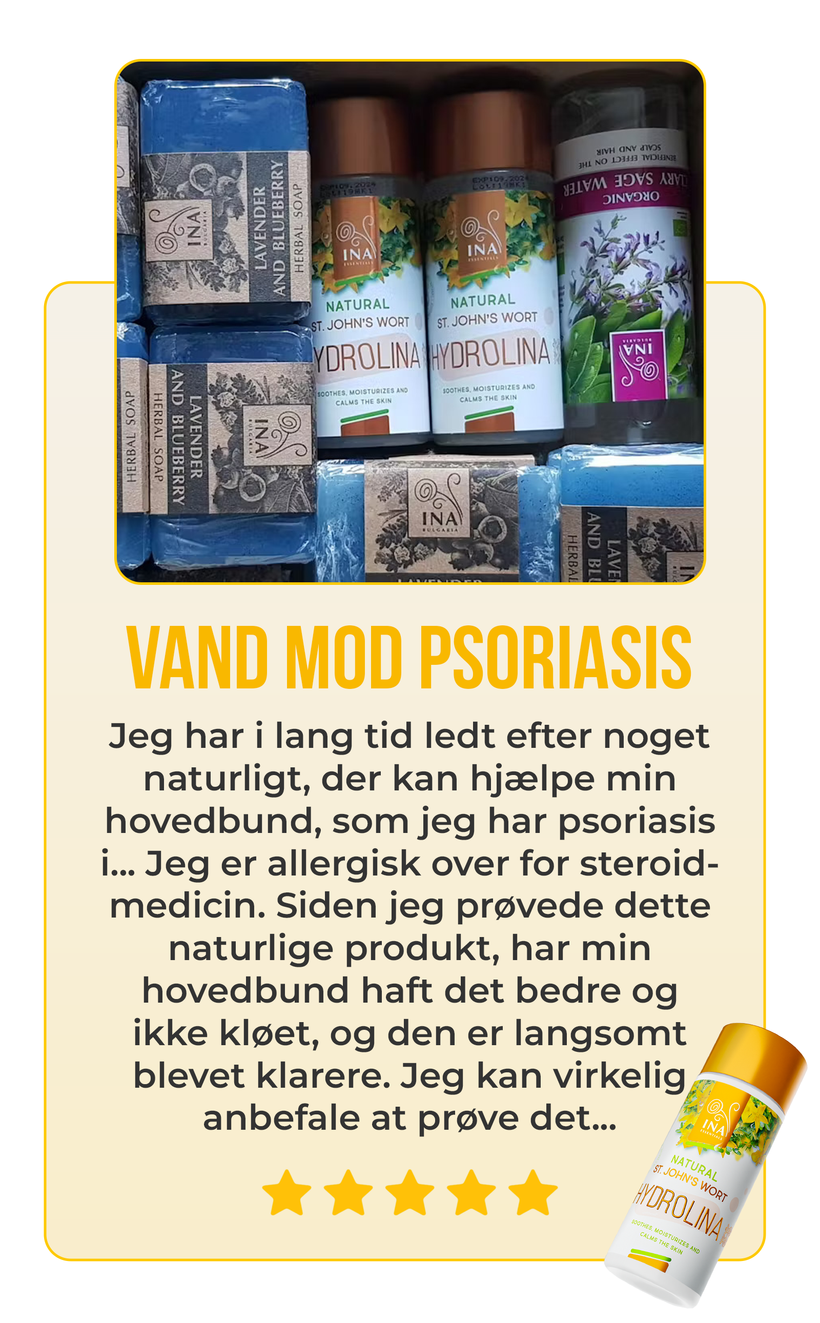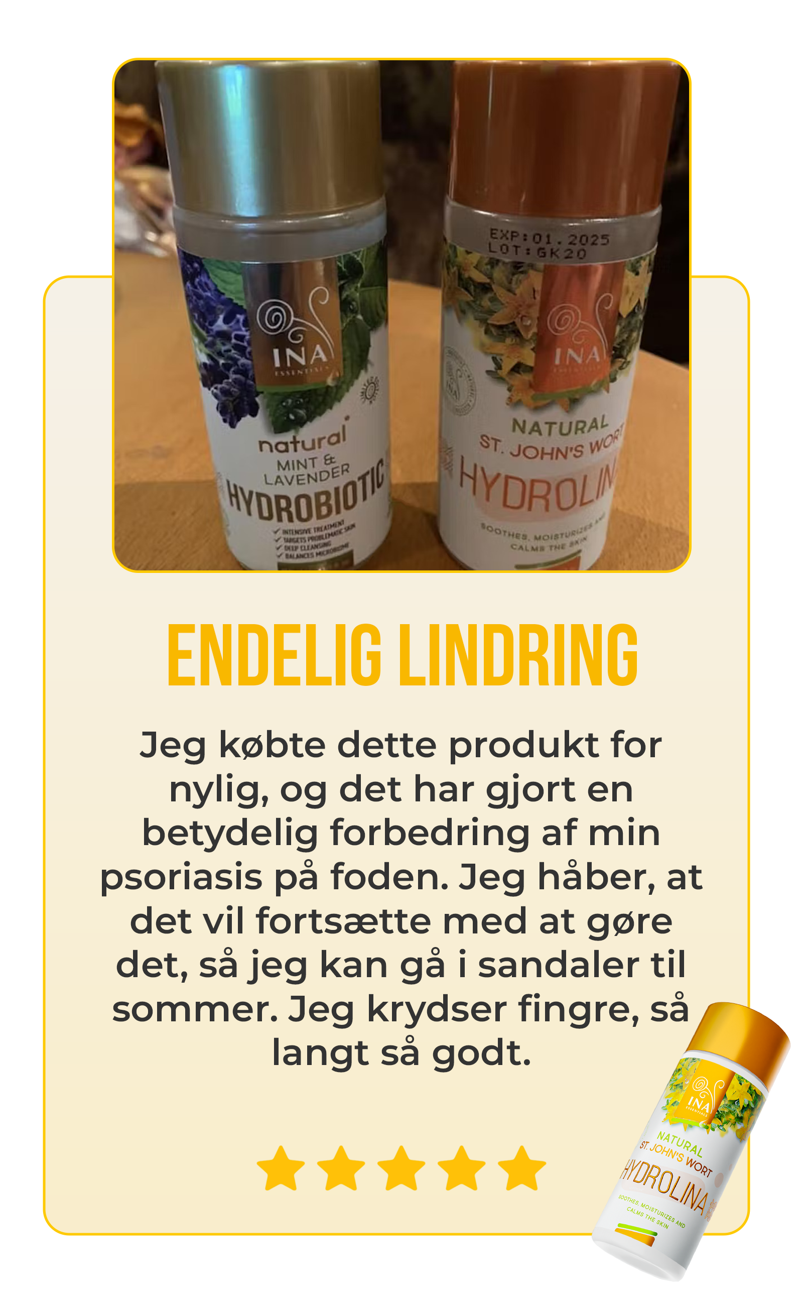 Læs autentiske kundeudtalelser og opdag kraften i vores Vilde Perikumvand Hydrolina. Med en imponerende kundetilfredshedsscore på over 90% har vores produkt vist sig effektivt til behandling af psoriasis, beroligelse af hudirritationer og sår samt forbedring af den generelle hudtilstand. Men du behøver ikke blot at tage vores ord for det - læs vores kunders egne historier og oplev det selv.
