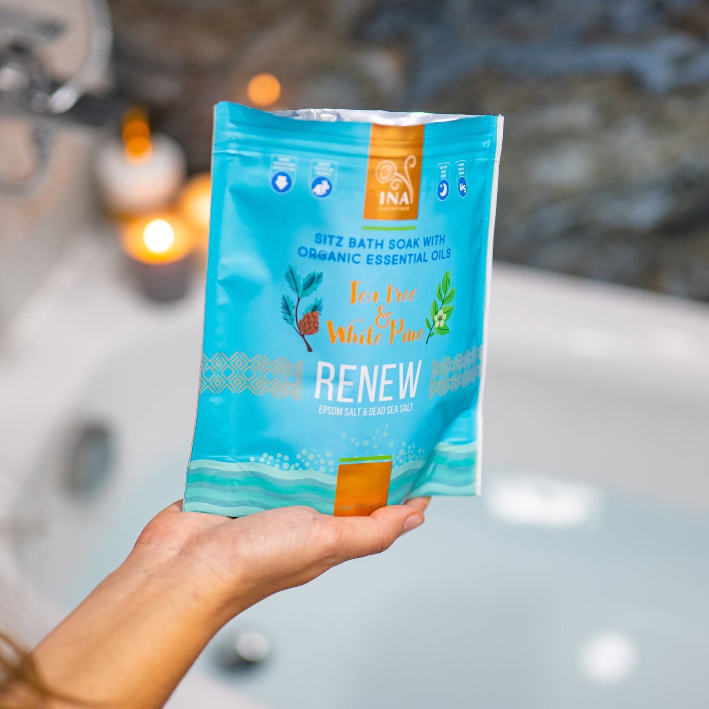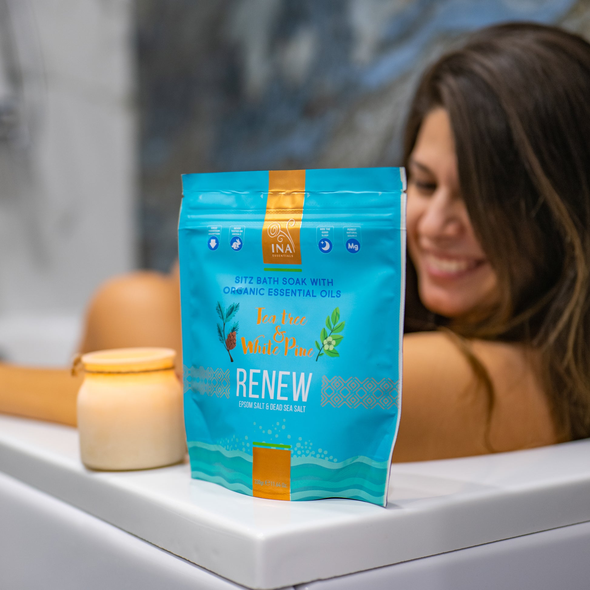 Premium pleje til trætte ben, bensmerter, genstridig hård hud og svampe. Vores InaEssentials Renew badesalte er formuleret med naturlige ingredienser og retter sig mod de mest almindelige fodproblemer med en kraftfuld løsning.