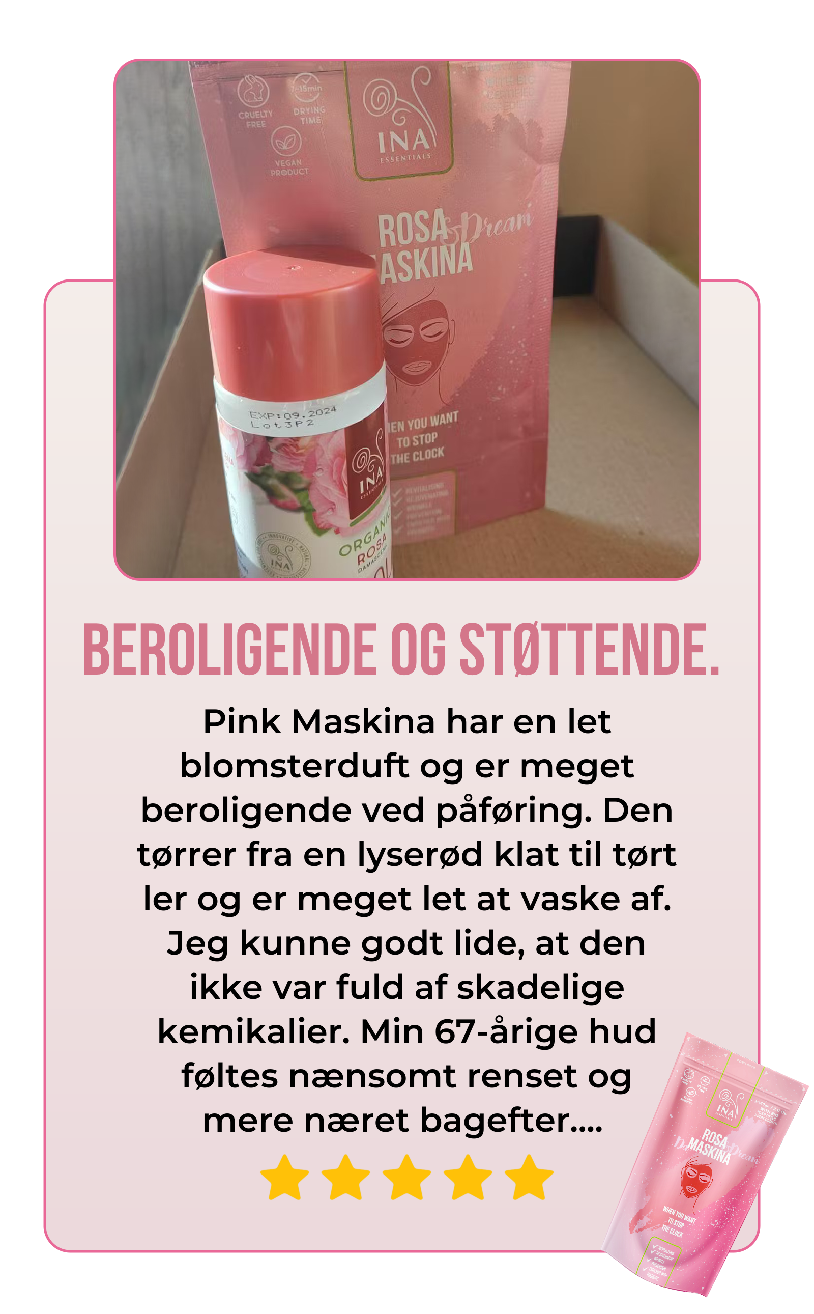Designet med omhu og øje for detaljerne, lavet af naturlige ingredienser og beriget med hudelskende planter og vitaminer. Denne blide Maskina er det perfekte ritual for selvpleje og mig-tid.