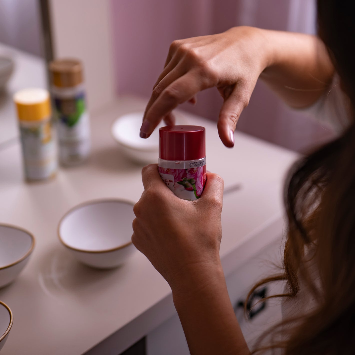 **Maskina er specielt designet til at komplementere InaEssentials' rosenvand hydrolina. Det vil sikkert fungere med andre væsker, men for et garanteret resultat – brug det med InaEssentials